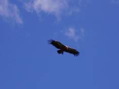 Entre la Cresse et Paulhe il m'est arrivé un truc magique. Un vautour est venu jouer avec moi pendant une dizaine de minutes peut être. Il se tenait derrière mon bord de fuite au ras de ma voile ou sur l'extrémité droite de l'aile et de temps en temps faisait le tour de mon parapente... Il m'a suivi sur des transitions et des thermiques... J'ai essayé de prendre queques photos mais ce n'est pas simple sans reflex.